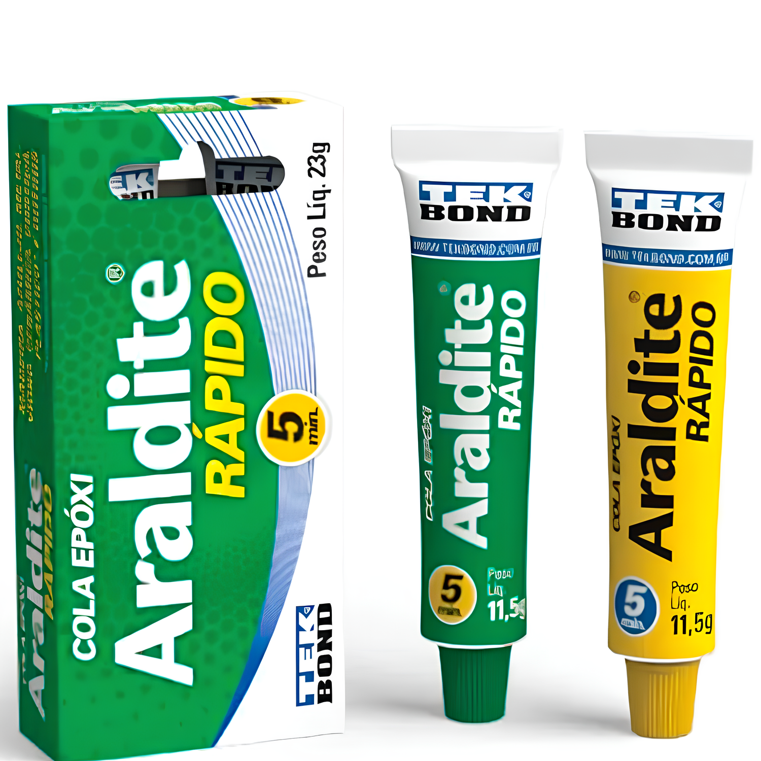 Cola Epóxi de dois componentes, que consiste em um resina e um endurecedor, que devem ser misturados antes da aplicação. Ao misturar, a reação química inicia o processo de cura, formando uma ligação forte e durável entre os materiais, esta cola epóxi tem tempo de cura de 5 minutos, o que proporciona uma rápida aderência, mas com tempo suficiente para ajustes e posicionamento antes de se tornar totalmente rígida, a embalagem de 23g é ideal para pequenas reparações, projetos de artesanato e hobbies, onde a quantidade de cola necessária não é grande. A embalagem é prática e de fácil manuseio, após curada, a cola epóxi oferece uma adesão muito forte e resistente a impactos, vibrações, calor, umidade e substâncias químicas, tornando-a adequada para uma ampla gama de aplicações, a Araldite Epóxi Hobby é ideal para reparos em madeira, cerâmica, vidro, metal, plásticos e outros materiais, sendo muito útil em artesanato, modelismo, reparos domésticos, construção de pequenos projetos e trabalhos manuais.