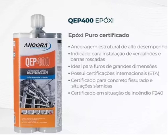 - Indicado para: Ancoragens estruturais, fixação de vergalhões, barras roscadas e elementos metálicos em concreto e alvenaria.