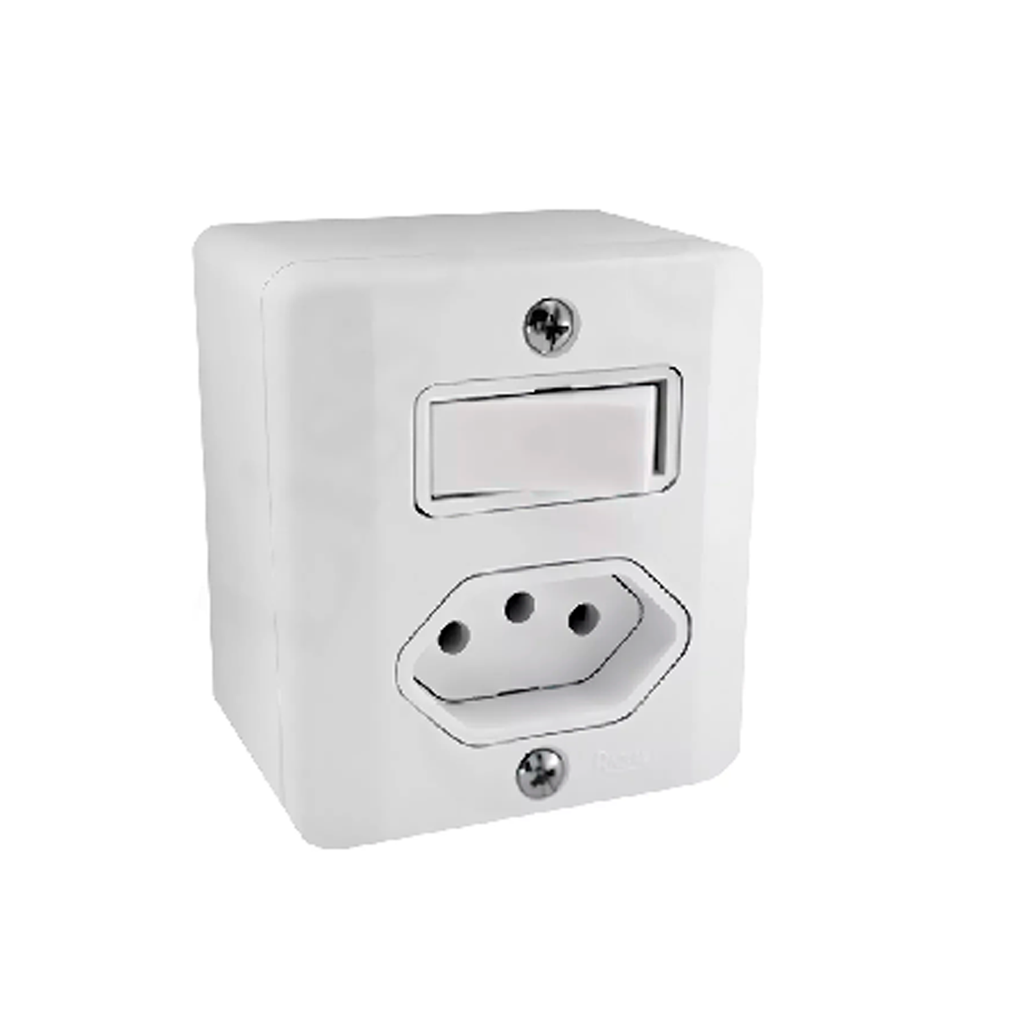 - Conjunto 1 interruptor paralelo + 1 Tomada Sobrepor Com Caixa 2P+T 250V/10A Branco 4 X 2 63280 Ilumi