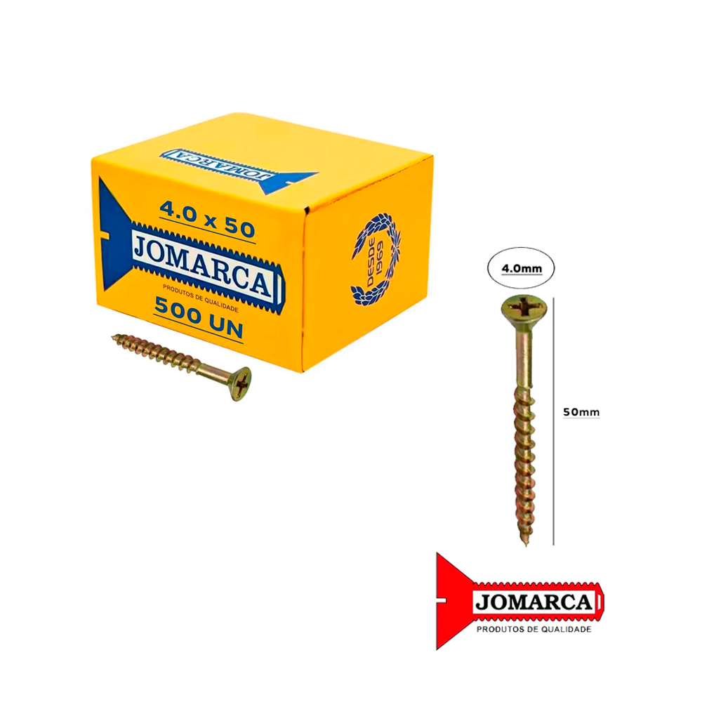 - 500 Parafusos Auto Atarrachantes Panela 500 Unidades 4.0 X 50 03227/29431 Jomarca