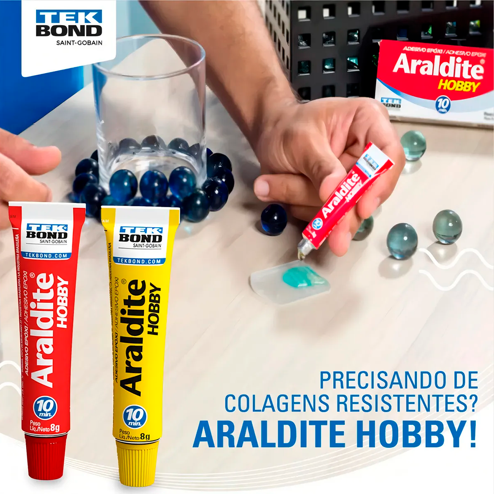 A Araldite Cola Epóxi Hobby Tek Bond 10 Minutos é indicada para pequenos reparos, colagens rápidas e trabalhos de precisão que exigem boa resistência e acabamento limpo.