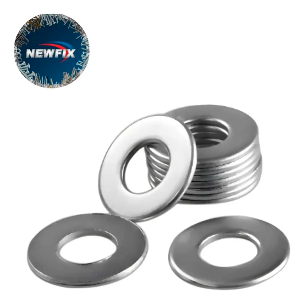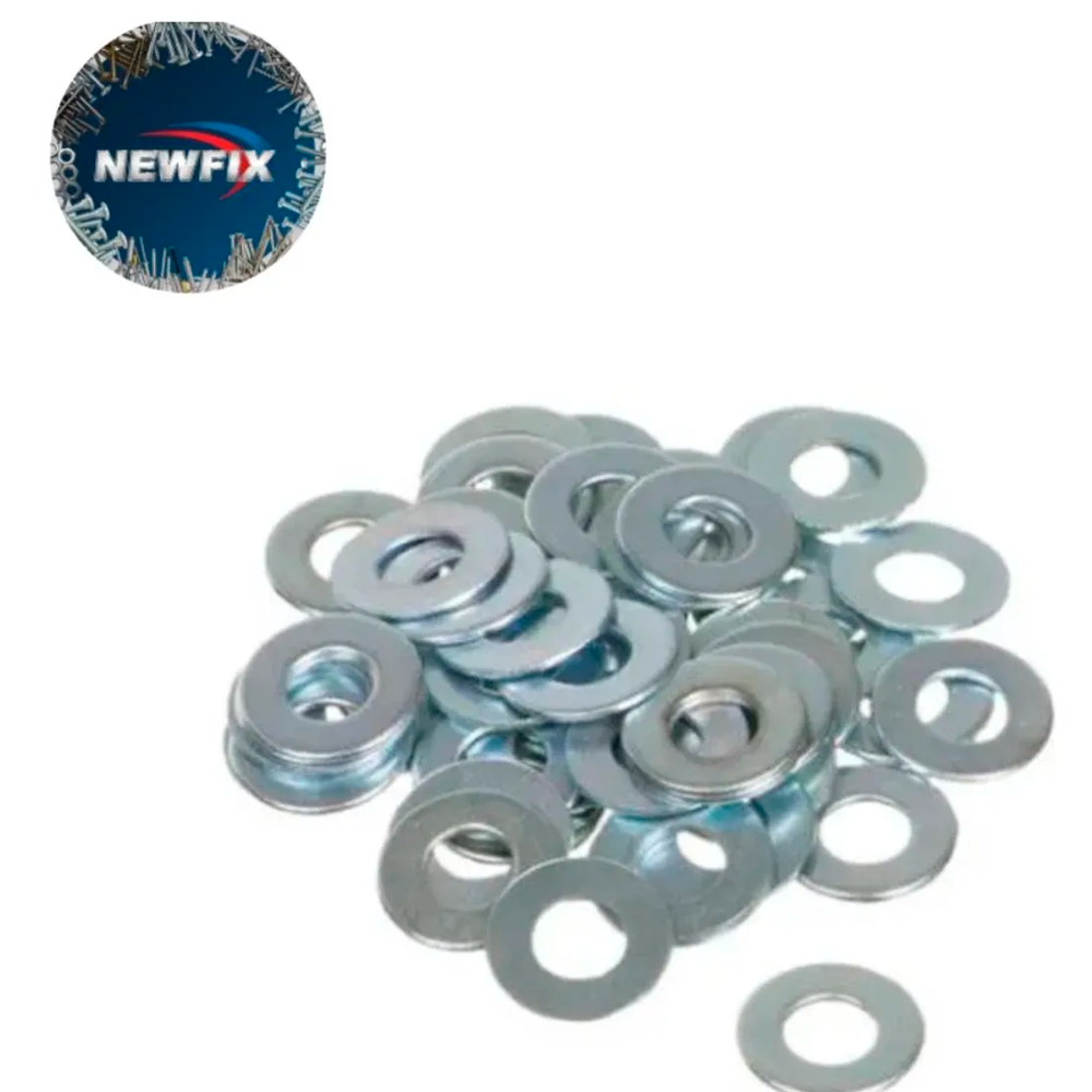A Arruela Lisa Zincada New-Fix é indicada para uso em fixações diversas, auxiliando na distribuição uniforme da carga e na proteção das superfícies apertadas por parafusos e porcas.