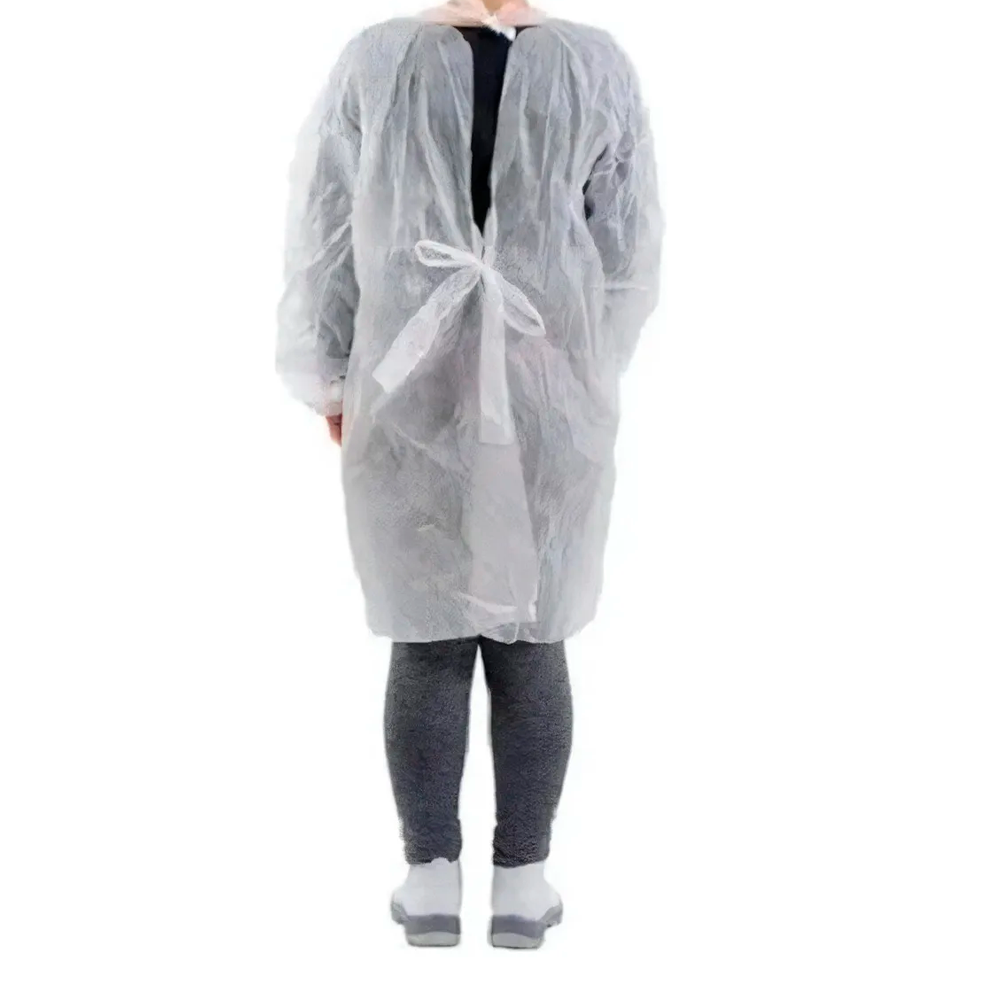 (tecido não tecido) 100% polipropileno, costurado totalmente com overloque, possui abertura dorsal e tiras para ajustar ao corpo na altura da cintura e pescoço. Atóxico.