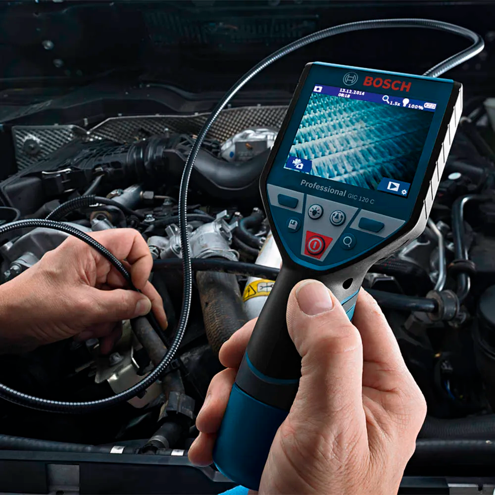 A Câmera de Inspeção Bosch GIC 120 C foi desenvolvida para inspecionar espaços estreitos e inacessíveis com uma microcâmera que alcança o que seus olhos não conseguem e ainda tira fotos, isto graças ao cabo de câmera flexível com 120 centímetros de comprimento e a câmera de 8,5 milímetros de diâmetro com led de iluminação com 3 níveis de intensidade para garantir a iluminação adequada nos locais a serem inspecionados.