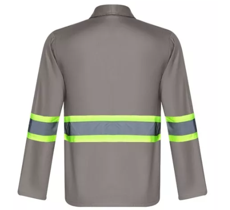 Camisa Brim Prof. Leve Manga Longa Gola Italiana C/ Elastico Punho Faixa Refletiva VD 5CM Cor: Cinza -THS