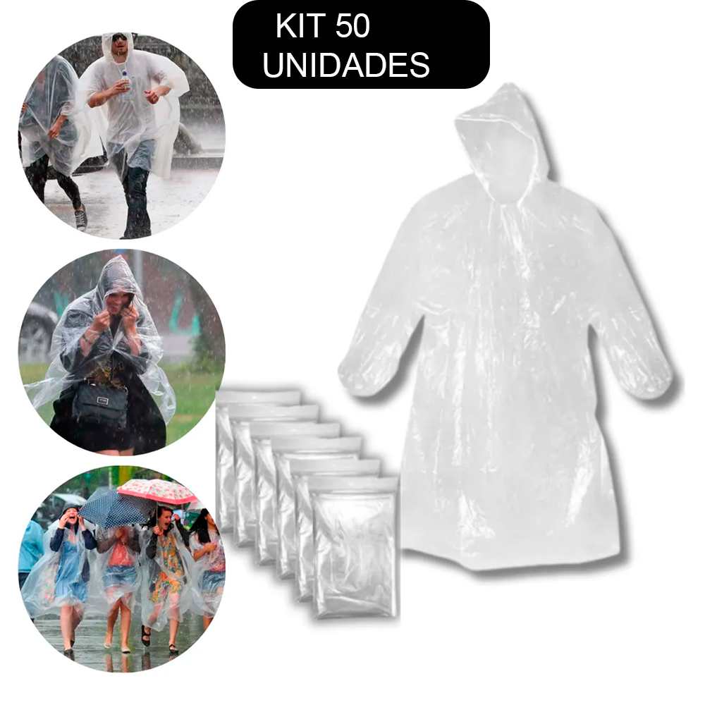 KIT 50 CAPAS DE CHUVA DESCARTÁVEIS TRANSPARENTES