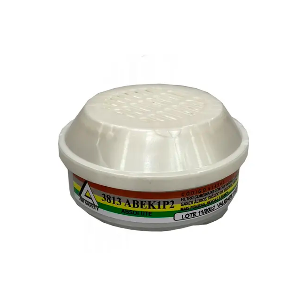 O Cartucho para Gases Químicos Air Safety 3813 ABEK1 P2 é indicado para proteção respiratória em ambientes com presença de gases, vapores orgânicos e inorgânicos, gases ácidos, amônia e partículas.