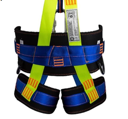 CINTO PARAQUEDISTA: Este é o tipo de equipamento em questão. Um cinto paraquedista é projetado para distribuir o impacto de uma queda, protegendo o usuário e