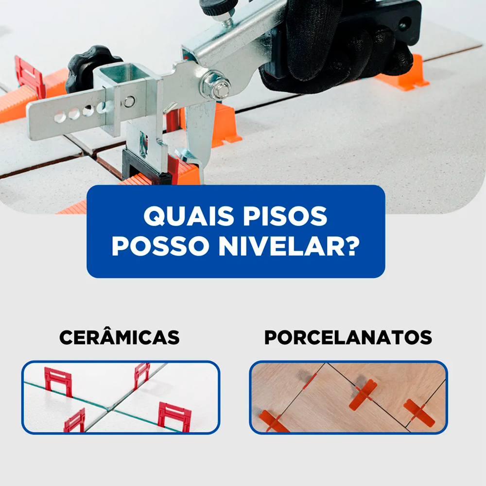 Utilizada em conjunto com os espaçadores niveladores do sistema PRO, ela elimina desníveis entre as peças, evitando o famoso degrau e proporcionando um resultado uniforme e de alto padrão.