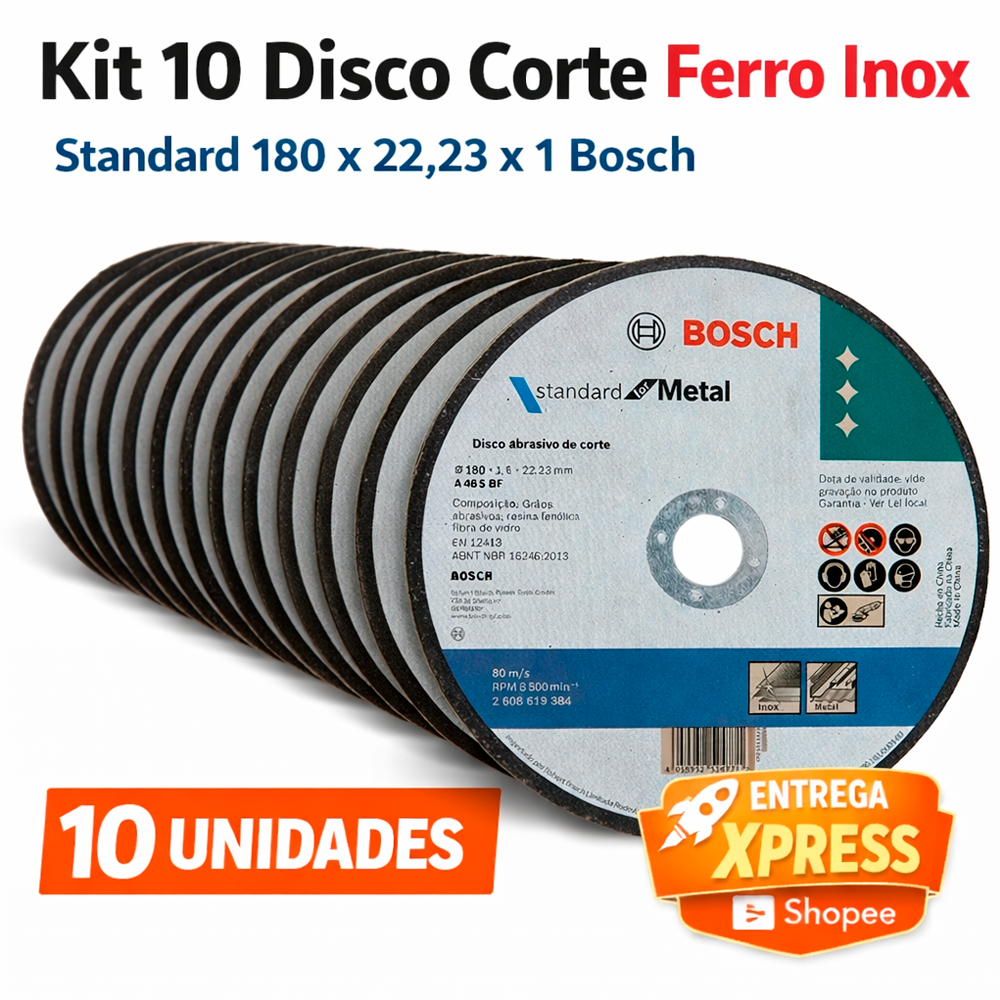 Kit 10 Disco Corte Ferro Inox Standard 180 x 22,23 x 1 Bosch