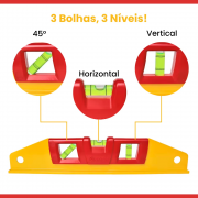 Esquadro de 12" possui cabo de alumínio e lâmina de aço carbono.