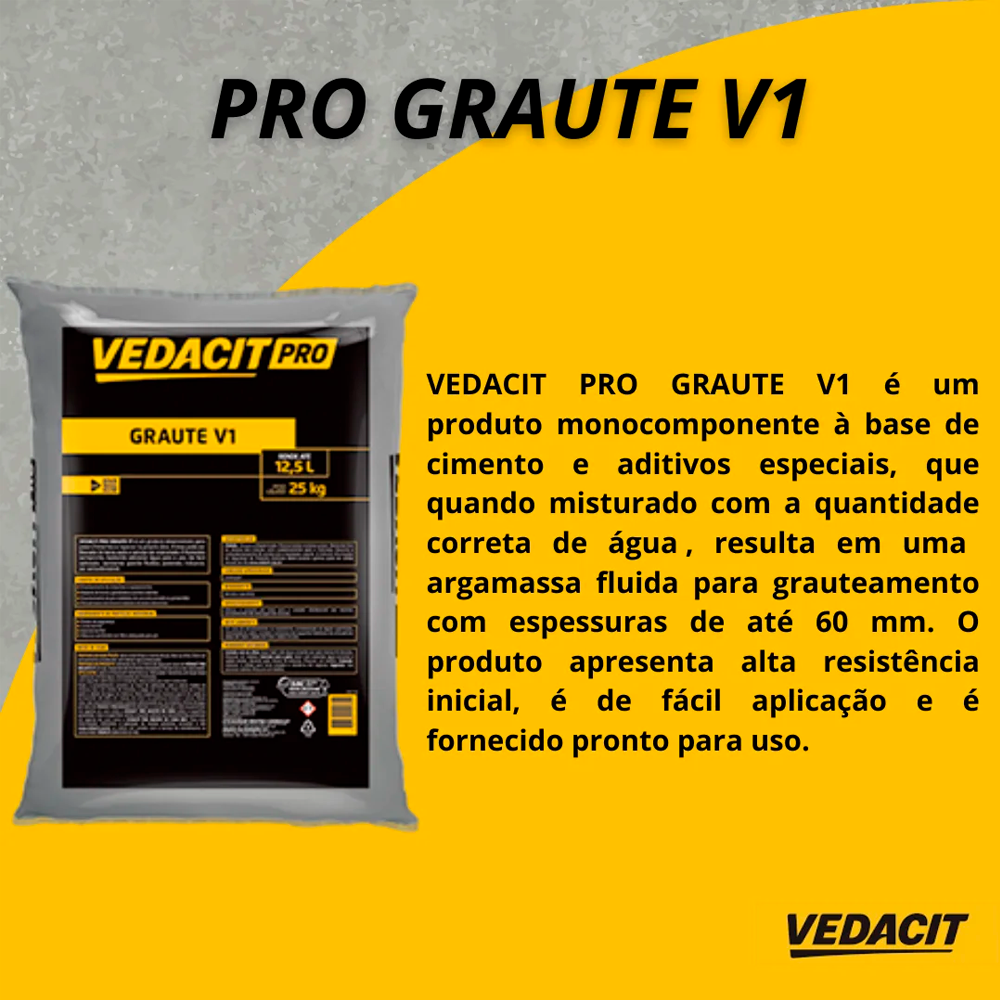 - 1 Saco de Graute Cimentício Autoadensável V1 Grauth 25 kg Vedacit