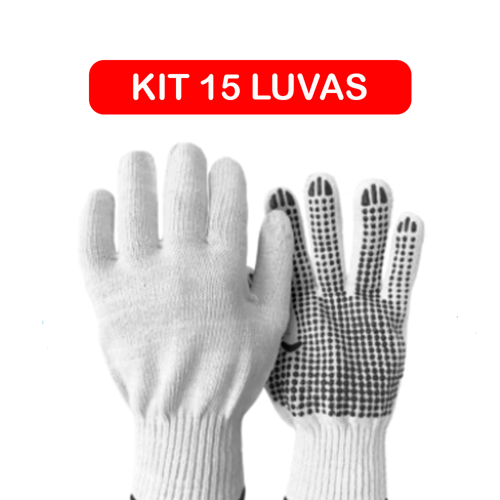 Kit 15 Luva Malha Pigmentada Tam Único Pedreiro Obra CA 31911 Plastcor