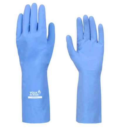 A Luva Multiuso da Volk é confeccionada em borracha natural (látex), com revestimento interno de flocos de algoda~o, sua superfície externa é antiderrapante na palma dorsal e dedos e seu comprimento é de 30 centímetros.