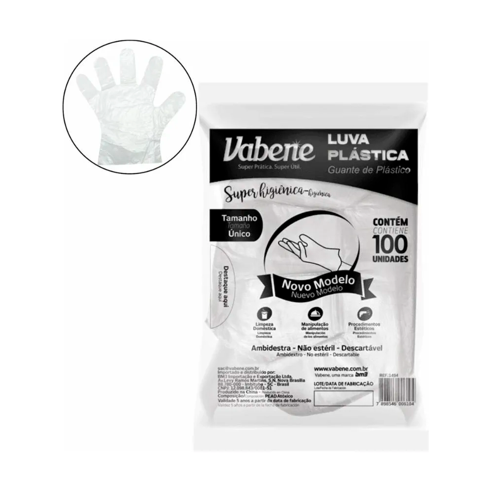 A Luva Plástica Descartável Vabene é a escolha ideal para quem busca praticidade, higiene e proteção em atividades que exigem contato direto com alimentos, produtos ou superfícies diversas.
