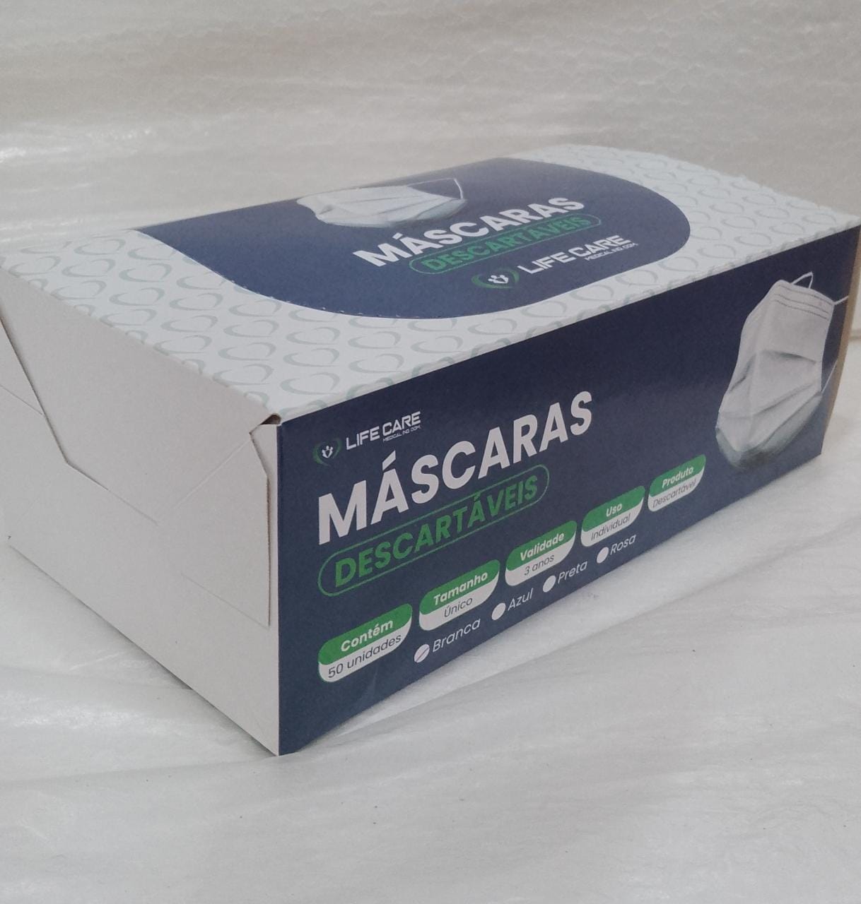 Mascara Descartável Tripla Camada (50 Unidades) Cor: Branca -LIFE CARE