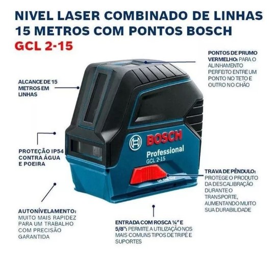 - 1 Nivelador de linhas 15 m com pontos Bosch GCL 2-15