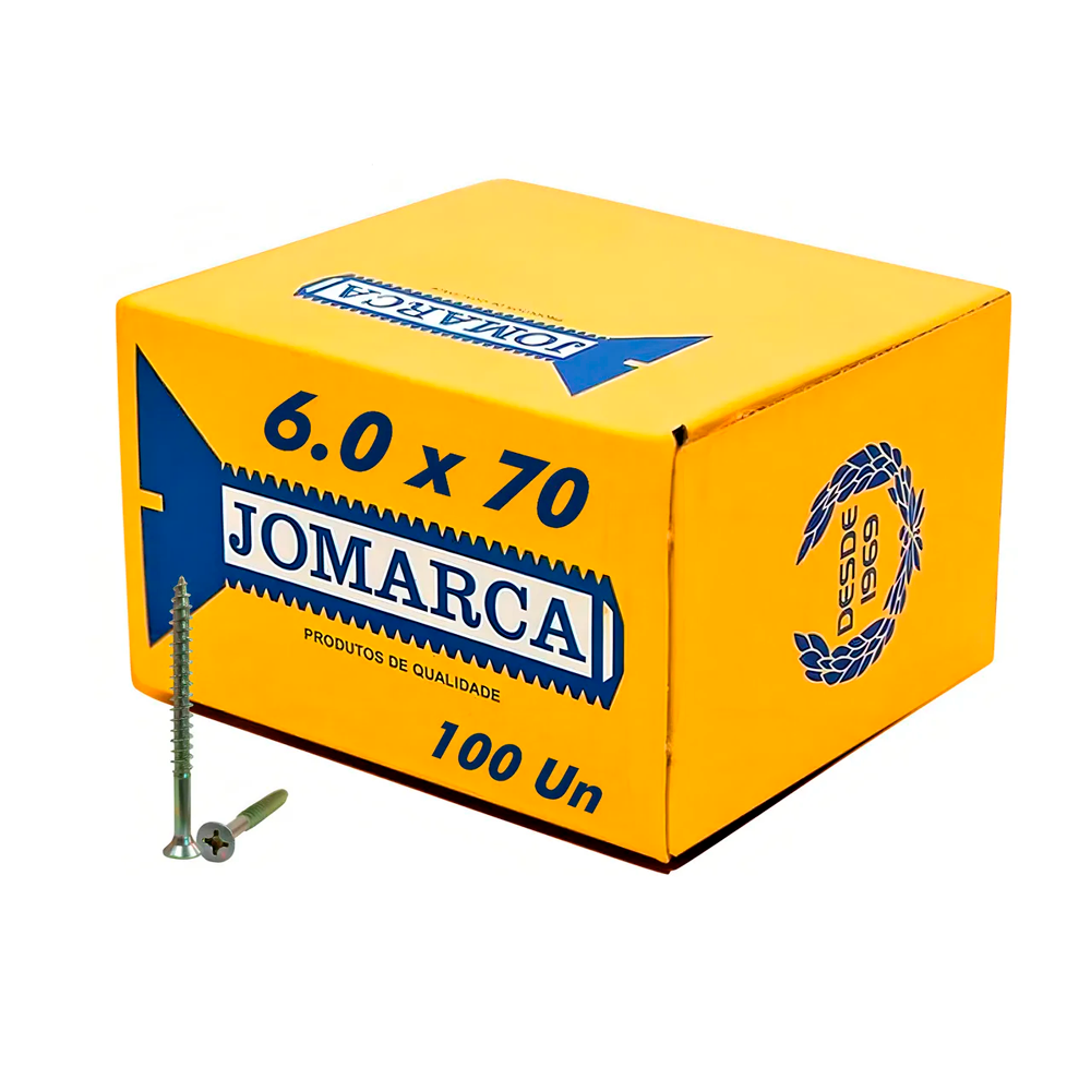 O Parafuso Chipboard Chata Phillips 6,0 x 70 mm da Jomarca é projetado para oferecer altíssima resistência e fixação robusta em madeira, MDF, MDP, compensados e estruturas pesadas.