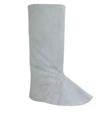 Perneira de segurança confeccionada em raspa, com fechamento frontal total em fita autocolante.