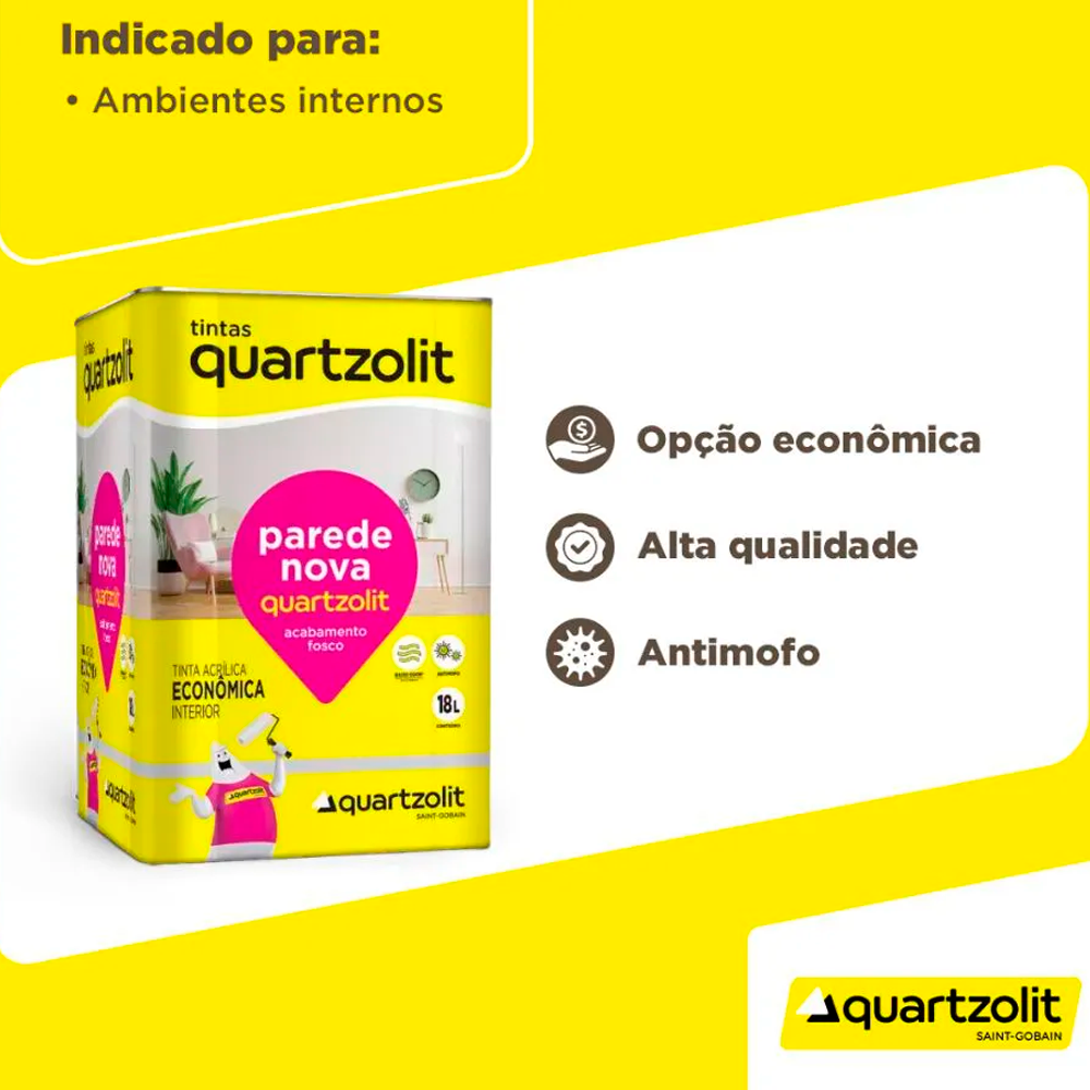 A Tinta Látex Acrílico Quartzolit Branco Neve 18 L foi desenvolvida para oferecer acabamento uniforme, alta cobertura e excelente rendimento em ambientes internos.
